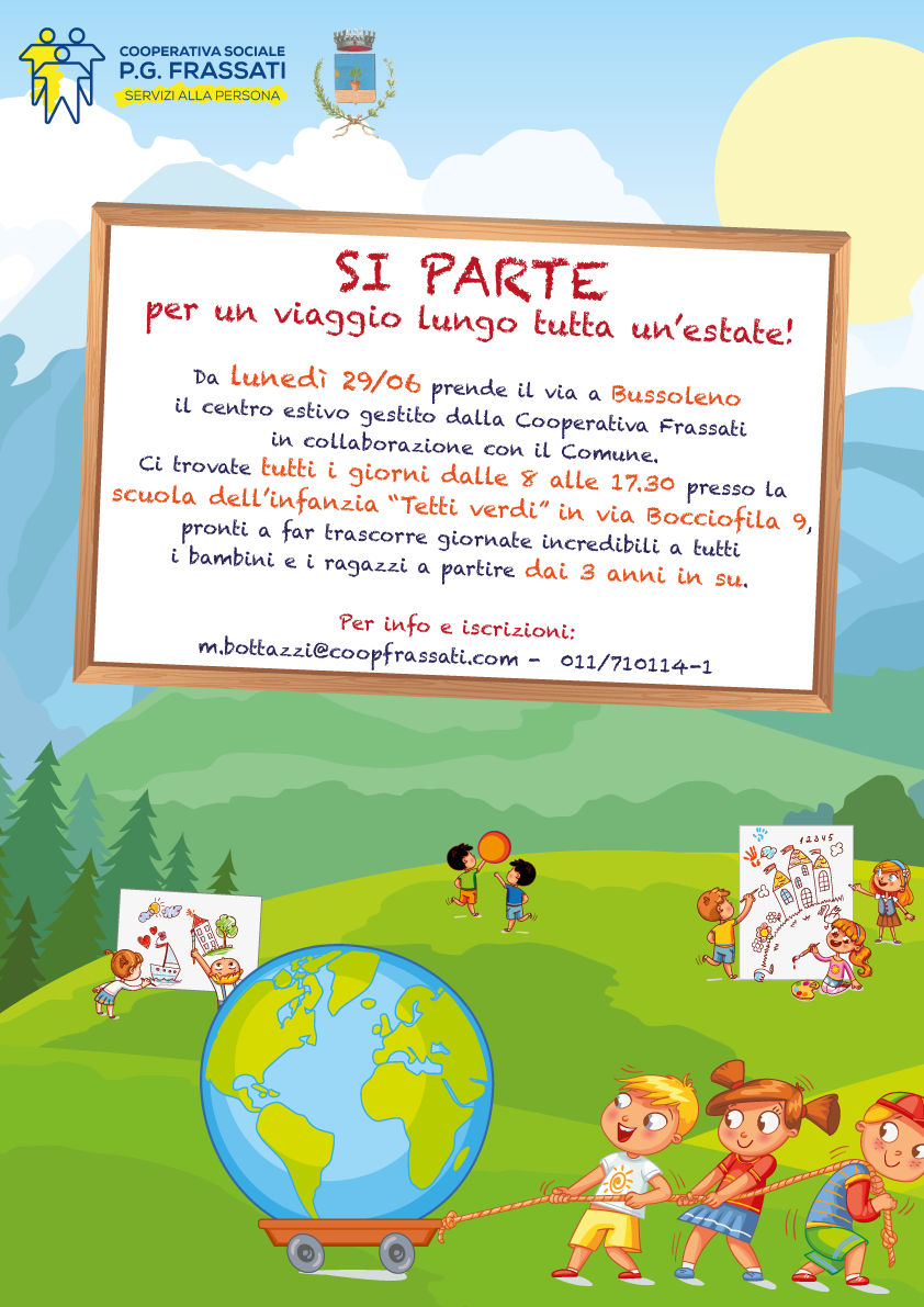 Si informa che sono aperte le iscrizioni per il Centro Estivo che verrà organizzato dal 29 giugno al 31 luglio 2020. E' possibile iscriversi telefonando al numero 331 6594988 o mandando una mail all'indirizzo m.bottazzi@coopfrassati.com