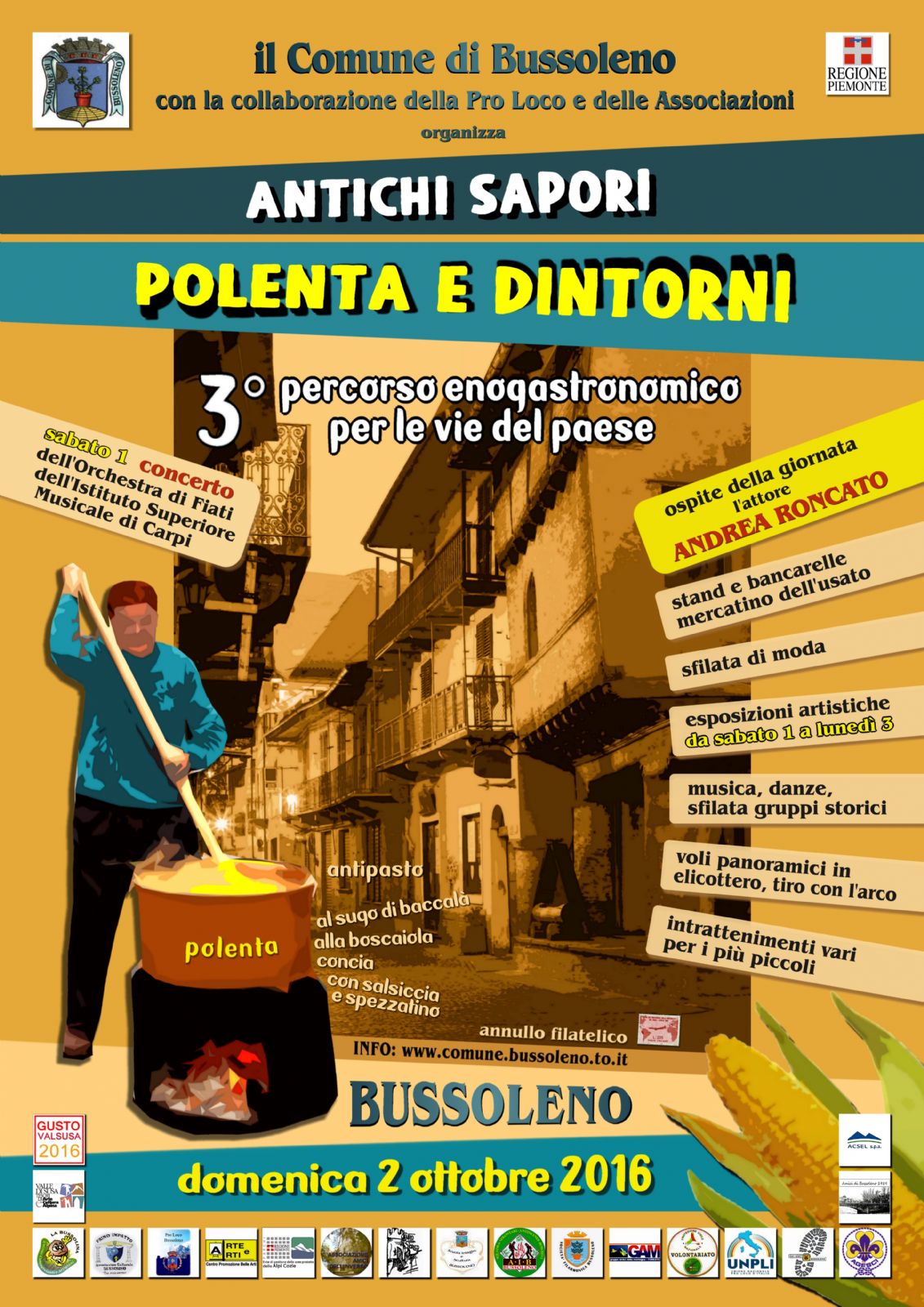 Il Comune di Bussoleno in collaborazione con le Associazioni e la Pro Loco, ha intende organizzare "Polenta e Dintorni". La manifestazione comprenderà un percorso gastronomico "Mangia e Cammina" per tutto il paese.