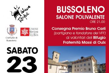 Presso il Salone Polivalente, ore 21:00 Consegna del premio ai volontari del rifugio Fraternità Massi di Oulx